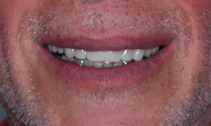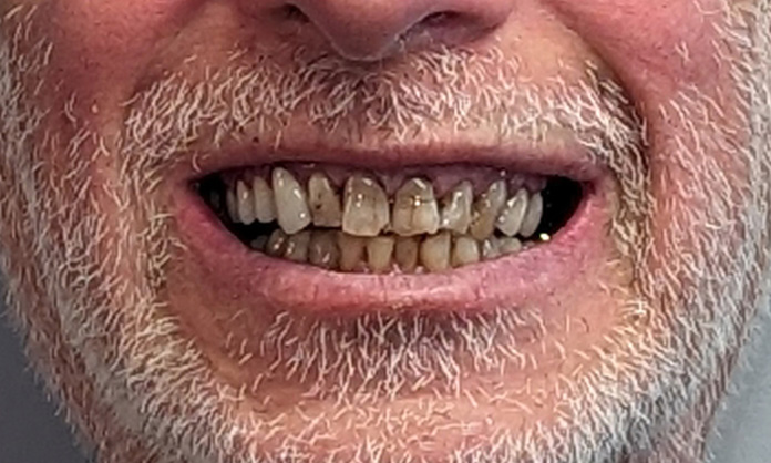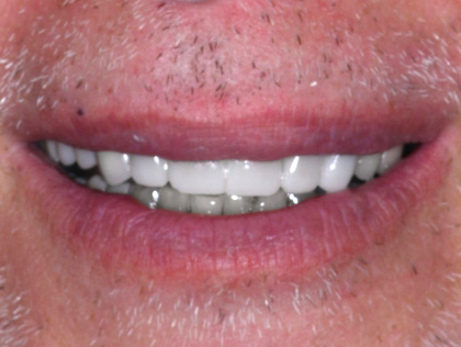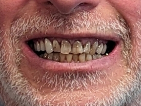 AFTERJohn D.Richard had a patchwork of fillings on his front teeth that were breaking down and made his teeth look discolored. By treating the teeth in one go he was able to leave with a transformed smile in just a few hours. Thrilled with the results, he only wishes he had done it sooner.